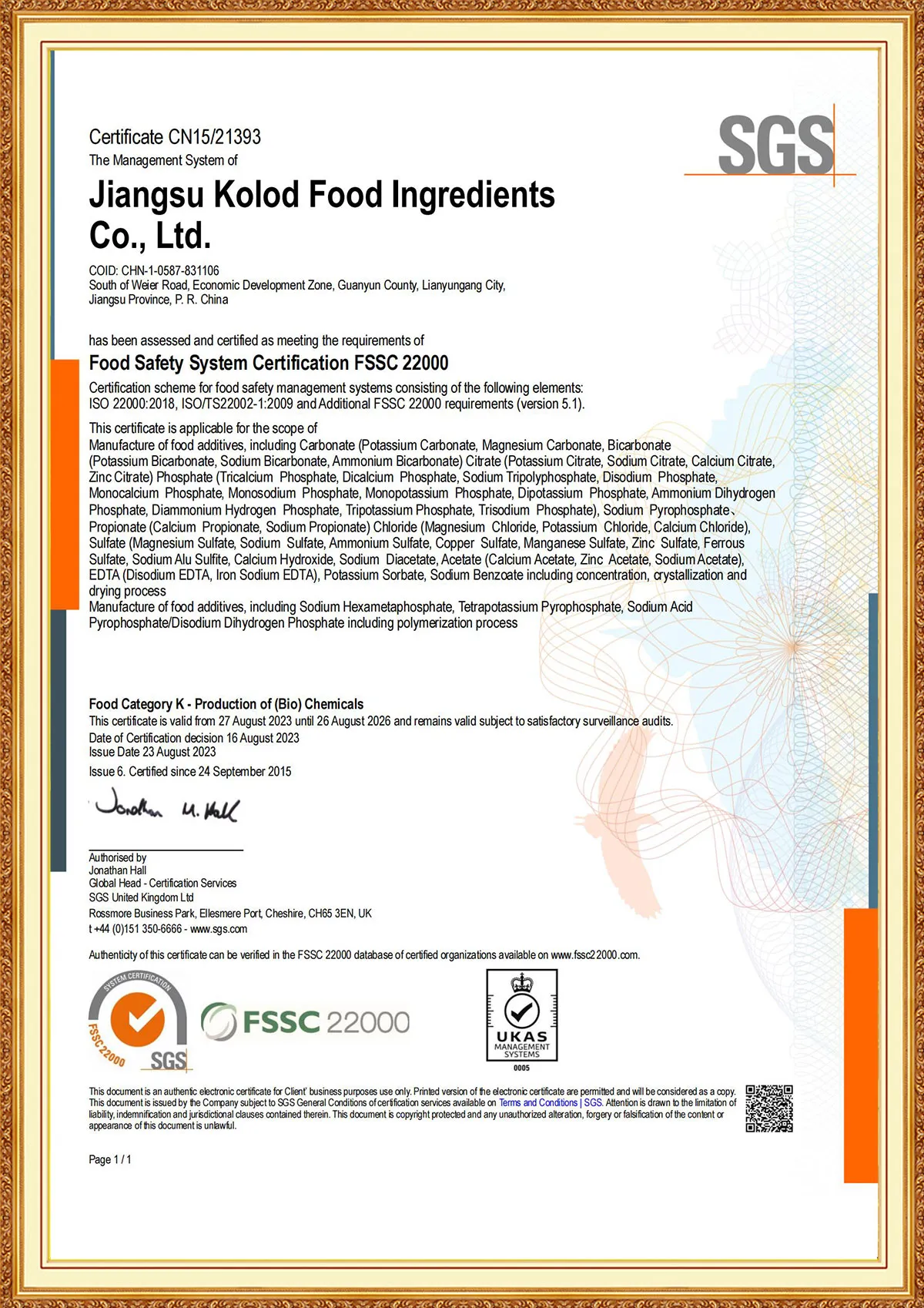 JIANGSU KOLOD FOOD INGREDIENTS CO.,LTD.