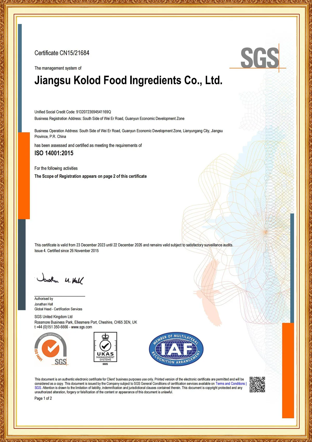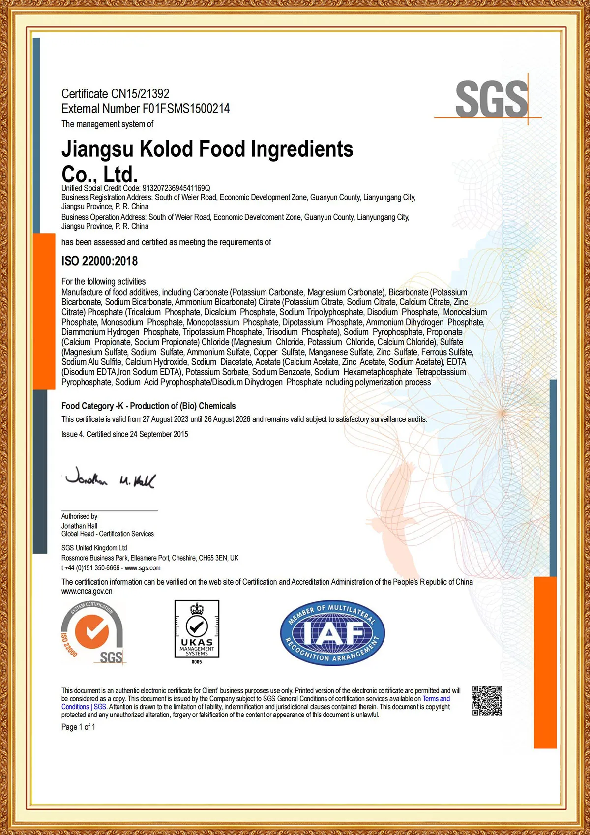 JIANGSU KOLOD FOOD INGREDIENTS CO., LTD.